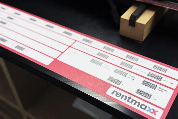 Für die Identifikation von Mietartikeln. Der Aufdruck ist durch eine kratz- und wischfeste Schutzfolie vor Beschädigungen geschützt. Sehr widerstandsfähig bei jedem Wetter und für einen Temperaturbereich von -30 °C bis +90 °C geeignet.